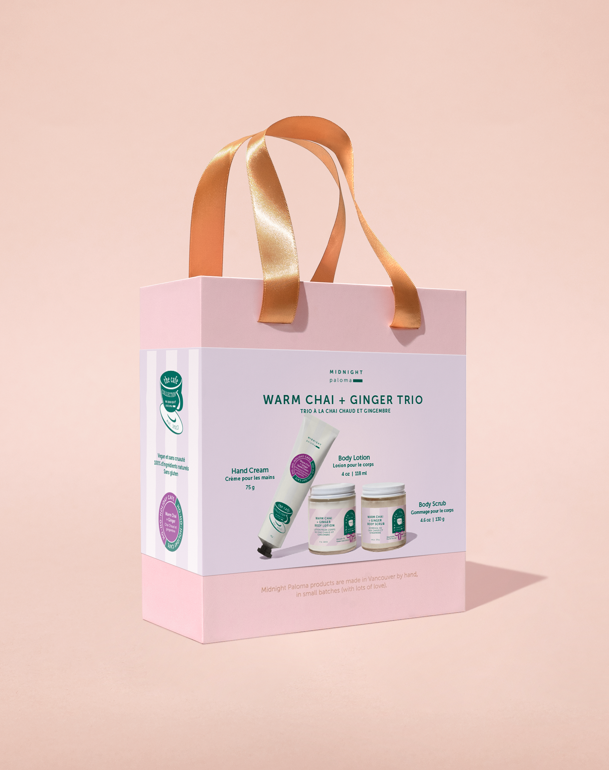 Experience the perfect blend of comfort and luxury with our Warm Chai + Ginger Trio Kit.