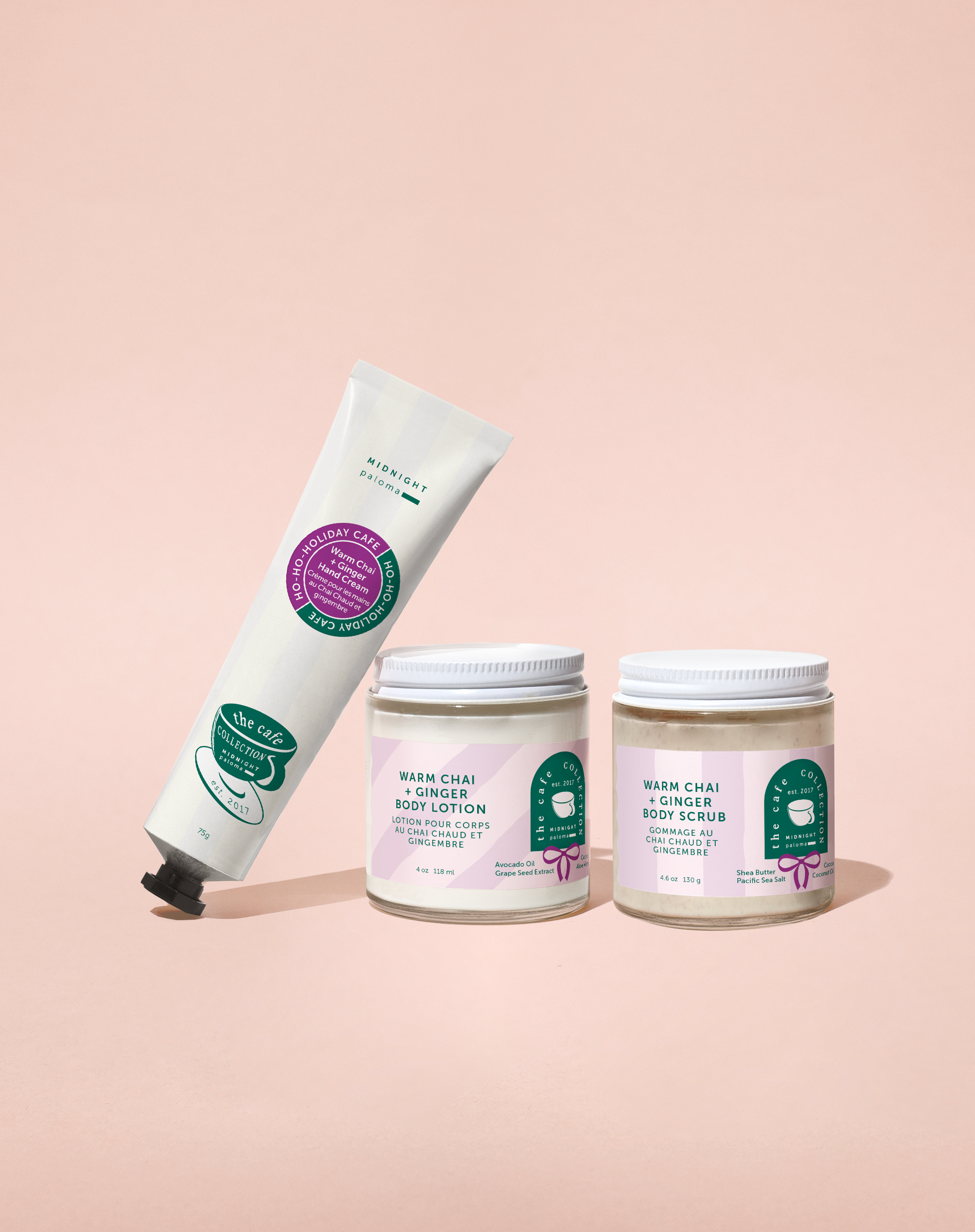 Treat yourself or a loved one to smooth, soft skin and the cozy, spiced scent of Warm Chai and Ginger.